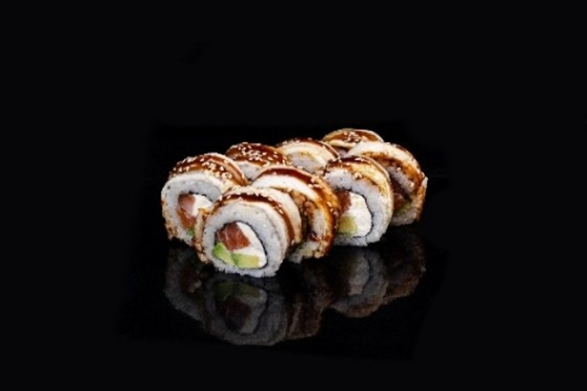 Рол з лососем, вугрем, авокадо та вершковим сиром.