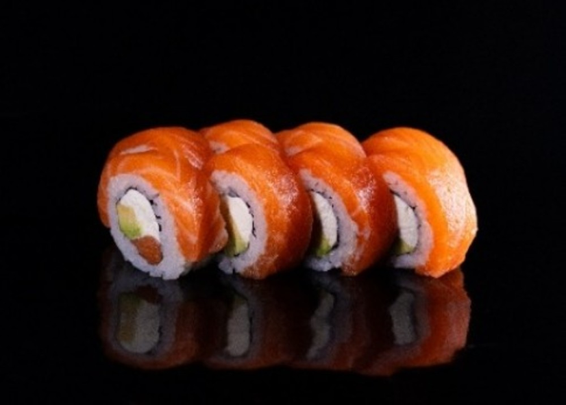 Рол з подвійною порцією лосося, авокадо та вершковим сиром.