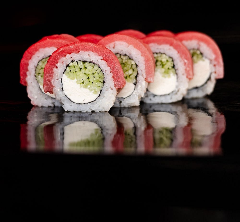 Рол з ніжним тунцем, огірком та вершковим сиром.